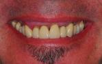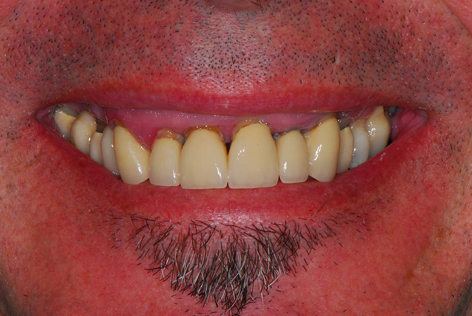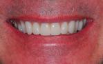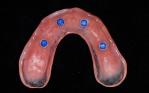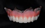 Replacement of all natural teeth with an upper overdenture clicking onto four implant fixtures.