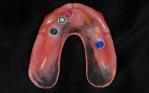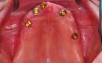 Replacement of all the teeth with an upper overdenture that clicks onto five implant fixtures and a fixed lower titanium framework acrylic bridge on four implant fixtures.
