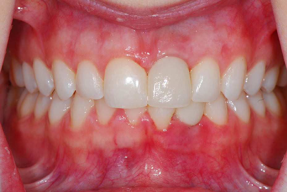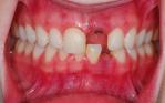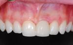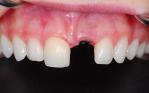 Replacement of two of her front teeth with a single implant crowns following an accident.