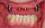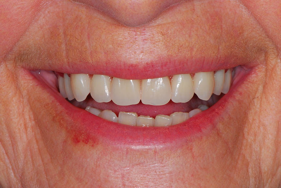 Replacement of upper overdenture and implant componentry to achieve a more aesthetic result.