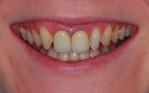 Some whitening, replacement of front two crowns, and some composite bondings to disguise a missing lateral incisor.