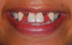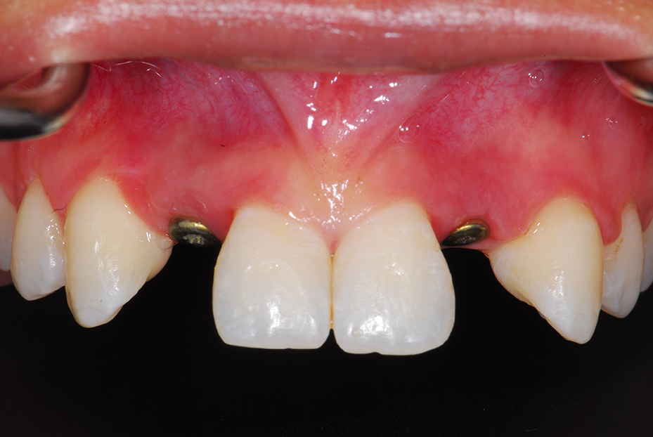 Replacement of congenitally missing upper lateral incisors with two implant crowns.